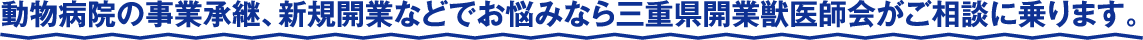 三重県開業獣医師会会員間独自のネットワークと、現役獣医師自らの手で事業承継する側、される側でできるだけ安くマッチングする事を考え、最適な候補先をご紹介致します。 その際には承継当事者同士での直接交渉で、承継の決まりはありません。例えば「家賃収入分だけ頂ければいい」とか自由な発想で交渉していただきます。